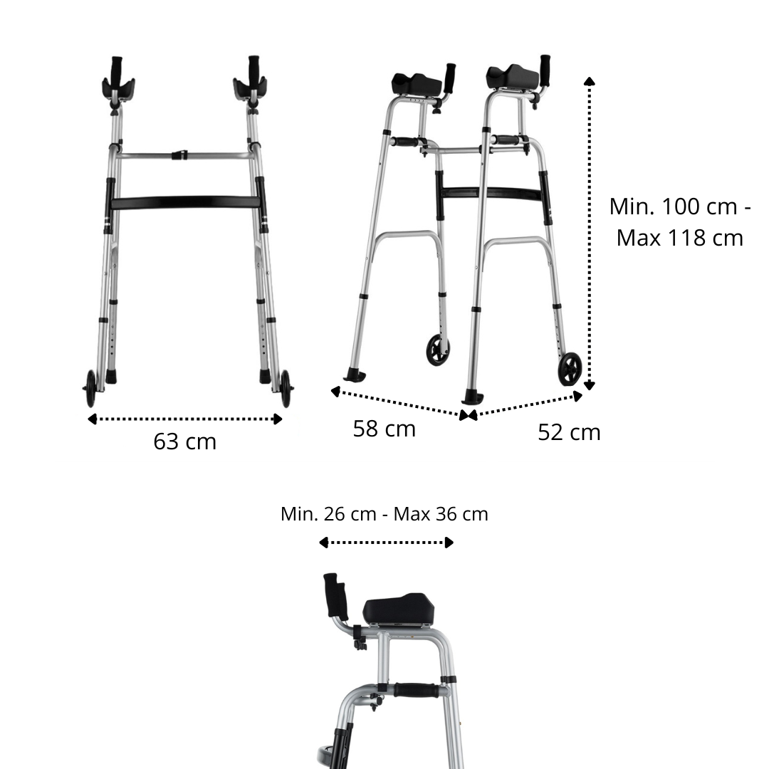 The Ferrucci Comfort Foldable Forearm Walker offers stability, safety, and independence for elderly users, individuals with reduced mobility, or patients in rehabilitation.