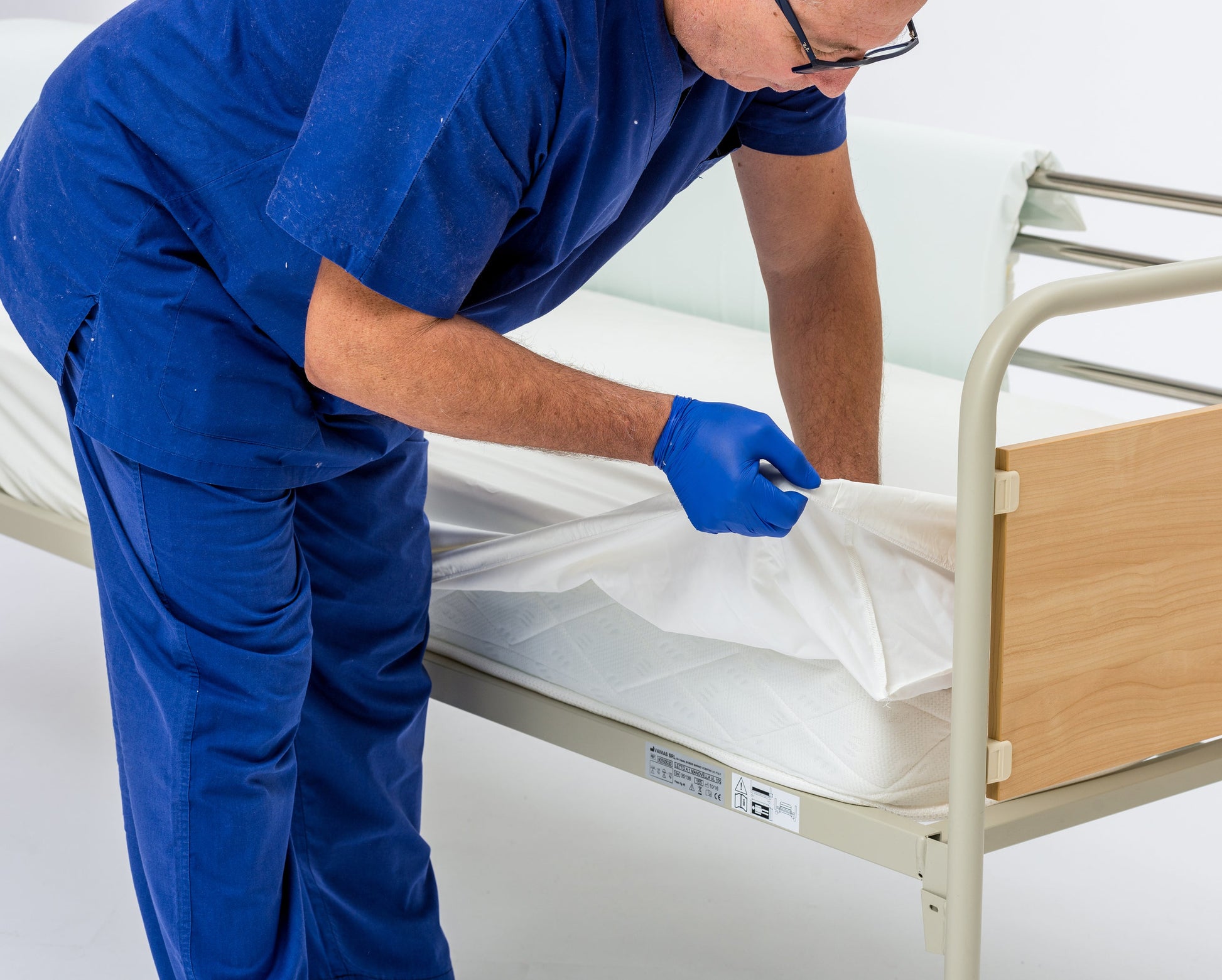 It completely covers not only the surface but also the sides of the mattress (standard European size), preventing any bodily fluids from damaging it.
