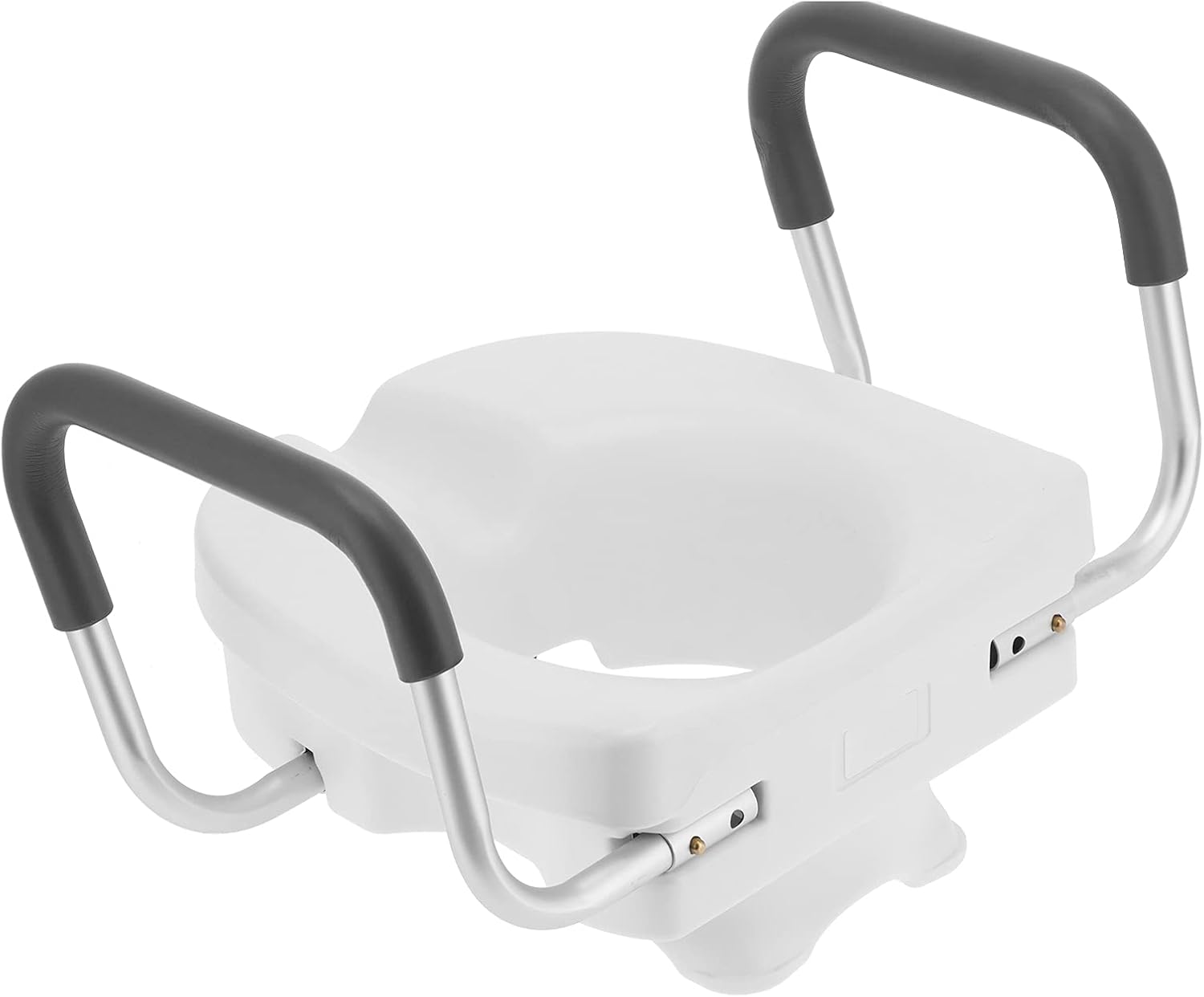 The Ferrucci Comfort Raised Toilet Seat with Armrests makes bathroom use safer and more comfortable for seniors, individuals with mobility limitations, or pregnant women.
