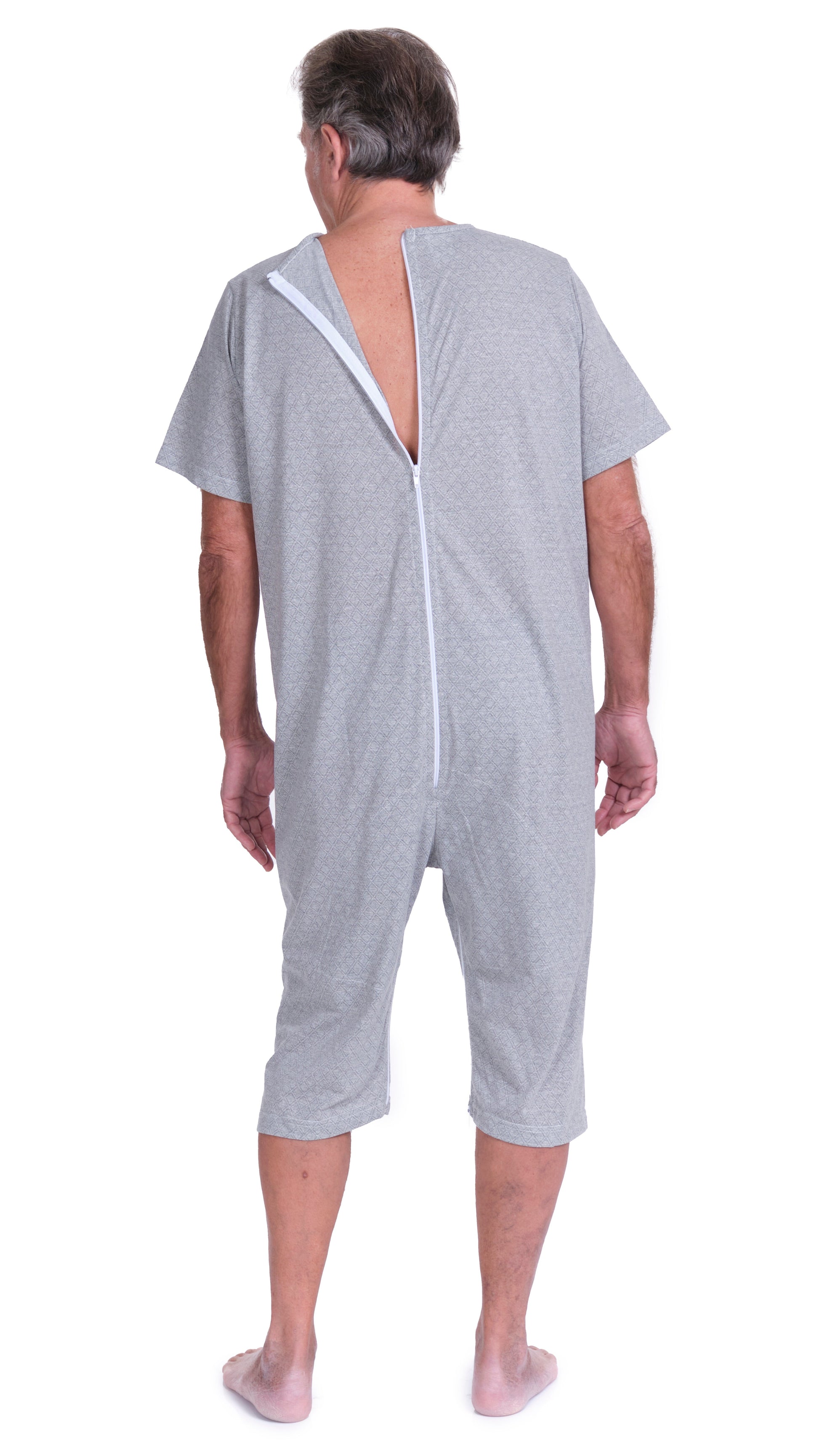 The rear zip makes it easier for carers to change aids. Short-sleeved version.