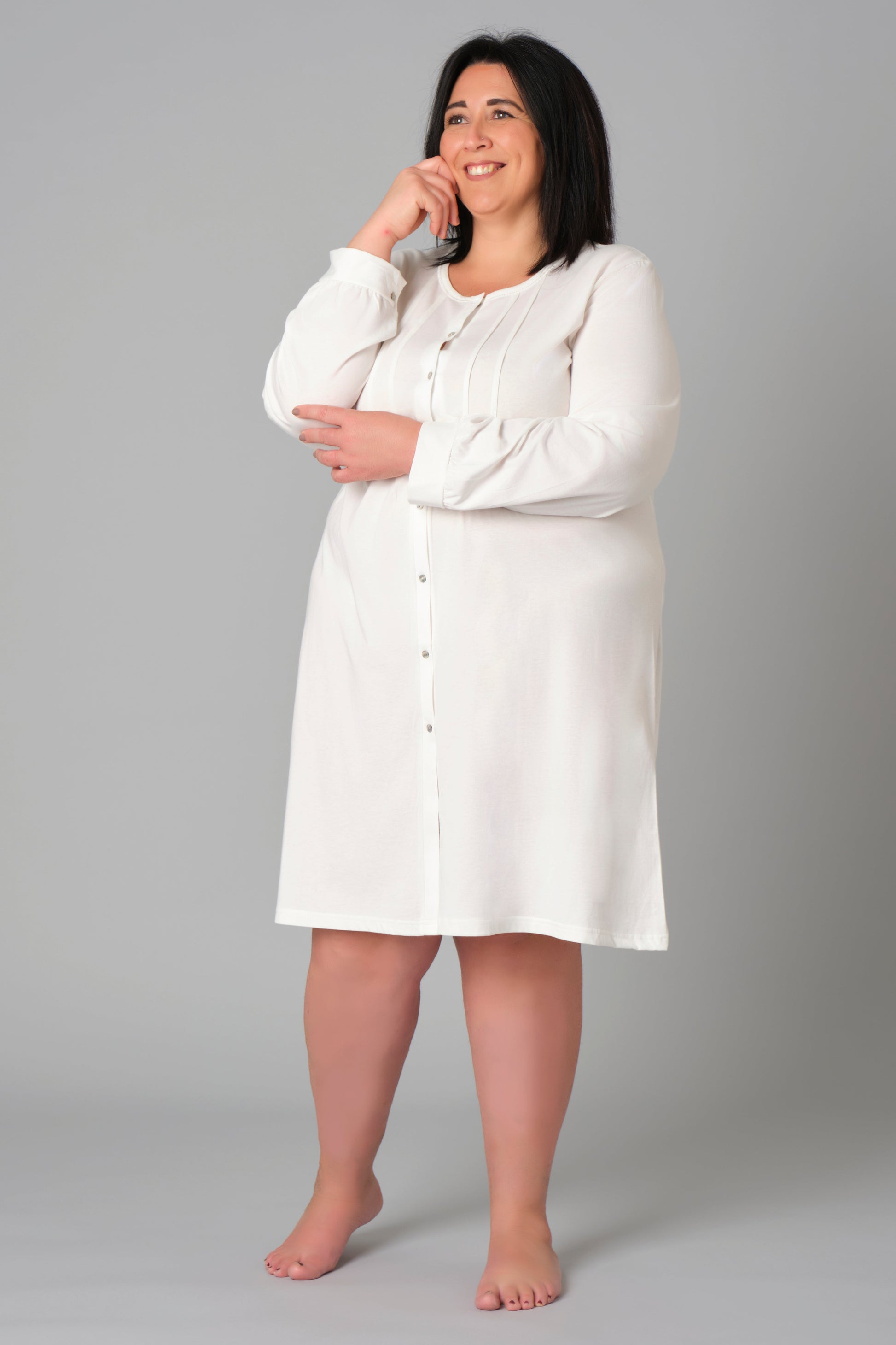 The Women’s Plus Size Nightdress – Model 9082 is designed for women who appreciate comfort and elegance at home. Made in Italy from 100% breathable cotton jersey, this oversized nightgown feels soft and fresh against the skin, retaining its shape even after frequent washing.