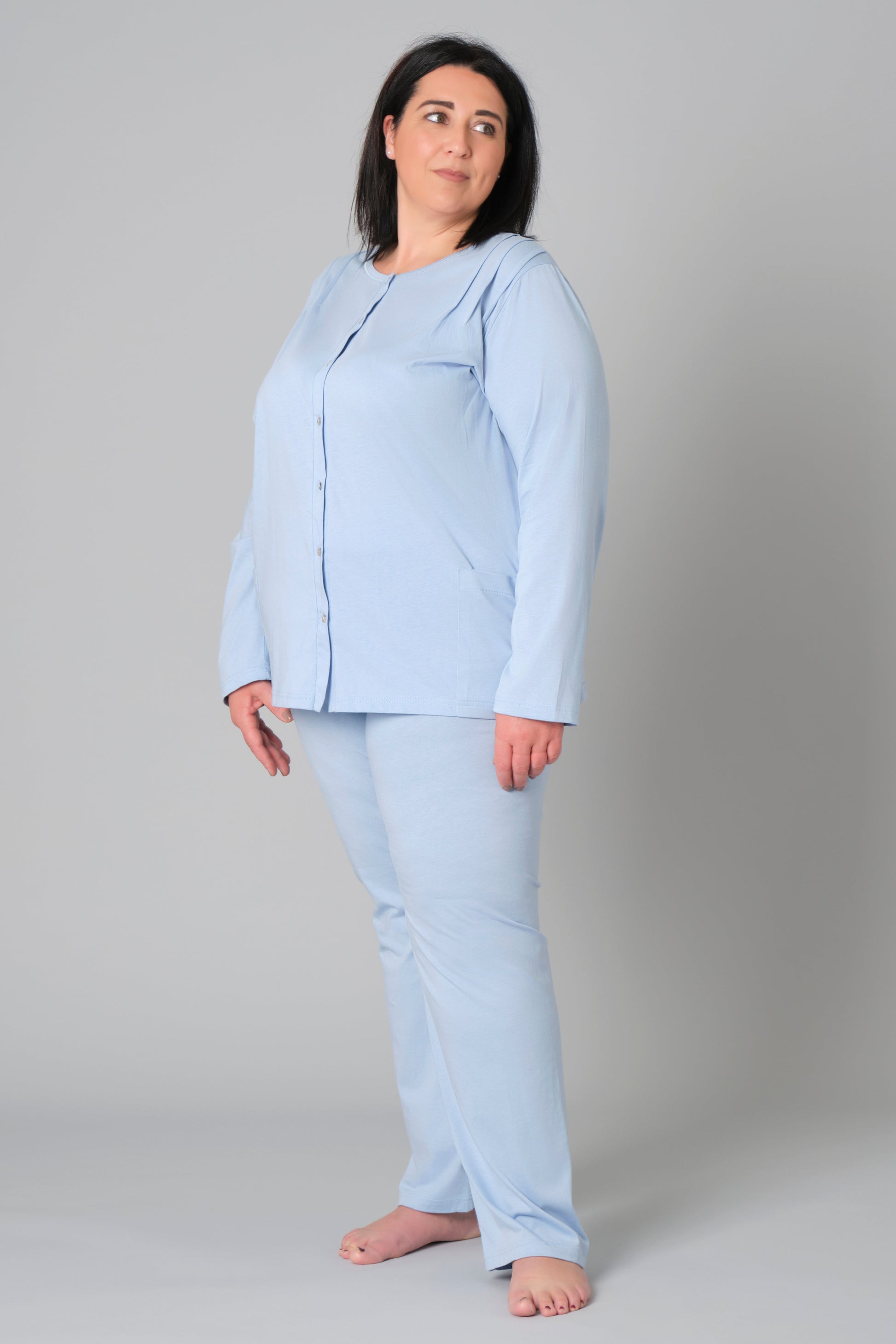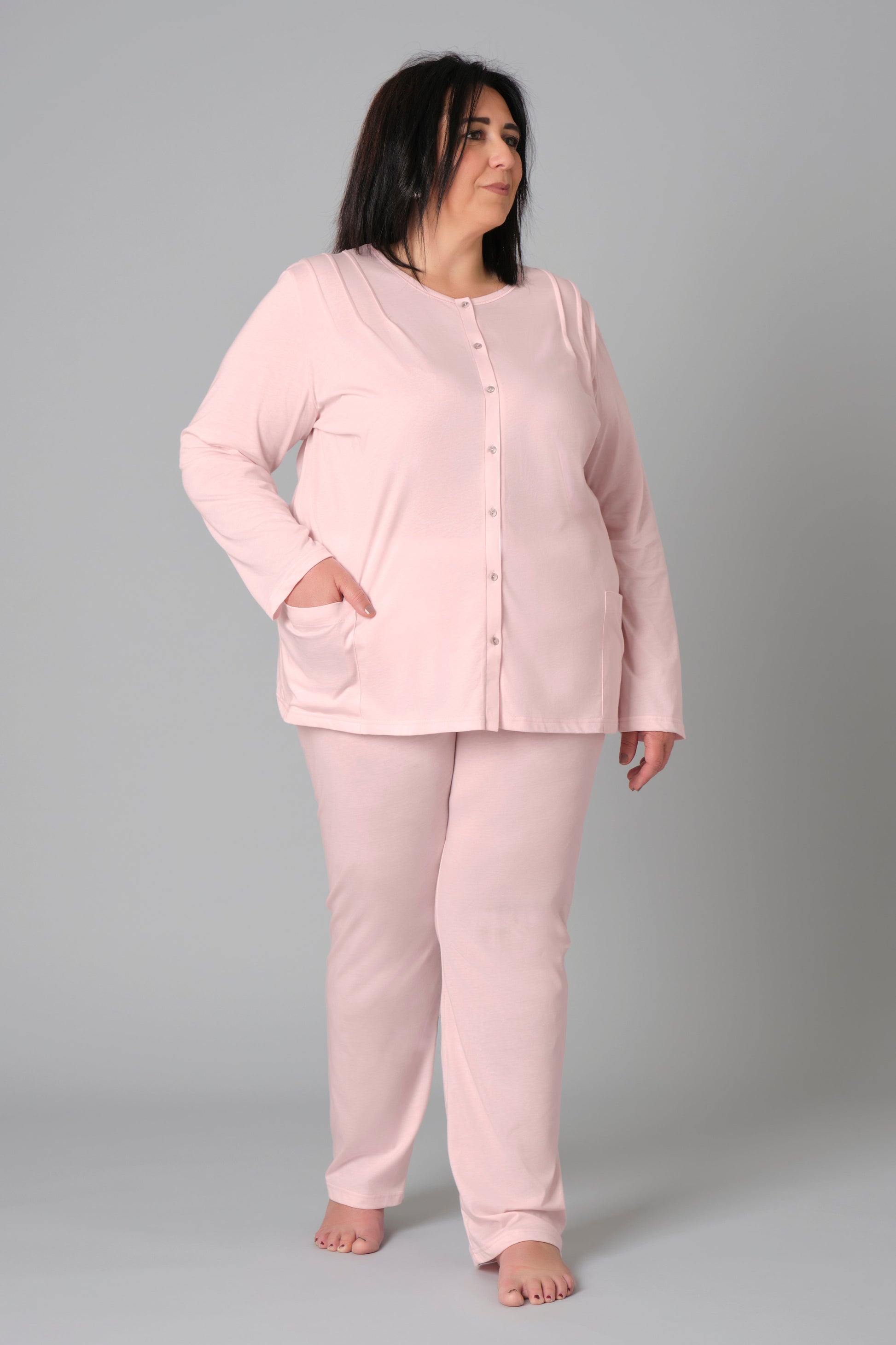 Women’s Plus Size Pyjamas – Model 9081 – Button-Down Cotton Jersey Set with Side Pockets – Various Sizes & Colours